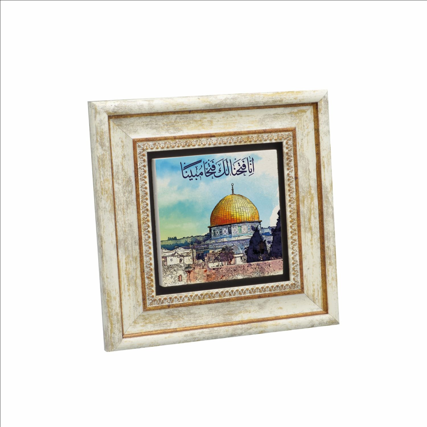 Jerusalem Dome of the Rock print on Limestone. Wood frame. 20″20cm.