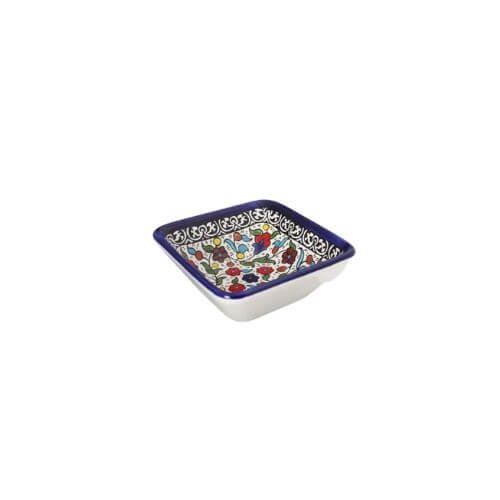 Floral Multicolor Ceramic Handmade deep square plate 12cm.